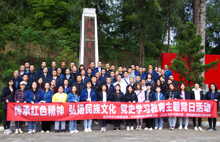 为深入贯彻学习习近平总书记党史学习教育动员大会重要讲话精神,进一步落实党中央和省委、市委有关部署要求,切实落实好省委书记彭清华同志在绵调研期间关于用好红色资源、高标准开展党史学习教育的指示精神,以中国共产党成立100周年为契机,传承红色精神,弘扬民族文化。4月16日,城市供水公司党支部、三水源供水公司党支部、三江汇泽公司党支部、营销服务窗口党支部联合开展学党史专题教育主题党日活动,缅怀革命先烈,学习嫘祖文化。集团公司党委书记、董事长杨先荣同志,集团公司党委副书记、董事、总经理龚勇同志,集团公司党委委员,纪委书记任勇同志参加了本次专题教育主题党日活动。