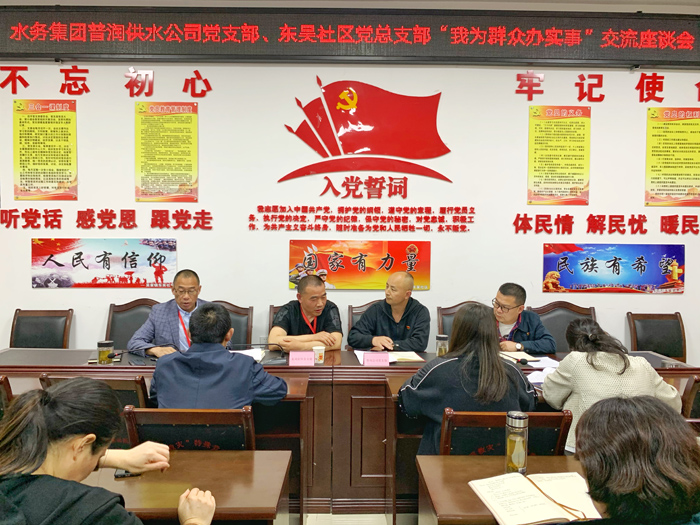 公司将“为群众办实事”实践活动作为优化营商环境的重要方面,与“五心利万家”党建品牌建设深度融合,做实做细党建品牌内涵。为满足用户对二次供水、水质水压等方面的需求,切实解决突发爆管后的用水难题,公司成立了相应的党员技术服务队和应急送水服务队,最大限度为用户提供技术服务,满足用户用水需求。针对高龄独居老人、残疾人等特殊群体,公司还鼓励党支部加强与社区对接,解决其实际用水困难。同时,公司大力实施“五心利万家”党建品牌中的“贴心服务”行动,通过采取提高用水报装效率、完善网上营业厅等一系列措施,实现供水业务受理同城通办、一网通办、就近办、马上办、一次办。