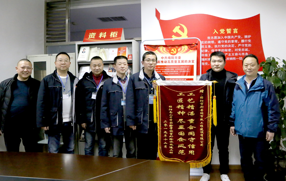 12月11日下午,南山中学实验学校两位校方代表来到斯普润市政工程公司,带着一面“工匠精神、尽显国企风范、工艺精湛、重合同守信用”的锦旗,赠予到斯普润市政工程公司总经理张涛手中,对我司工程施工安装的专业高效和诚实守信的服务态度表示衷心感谢。