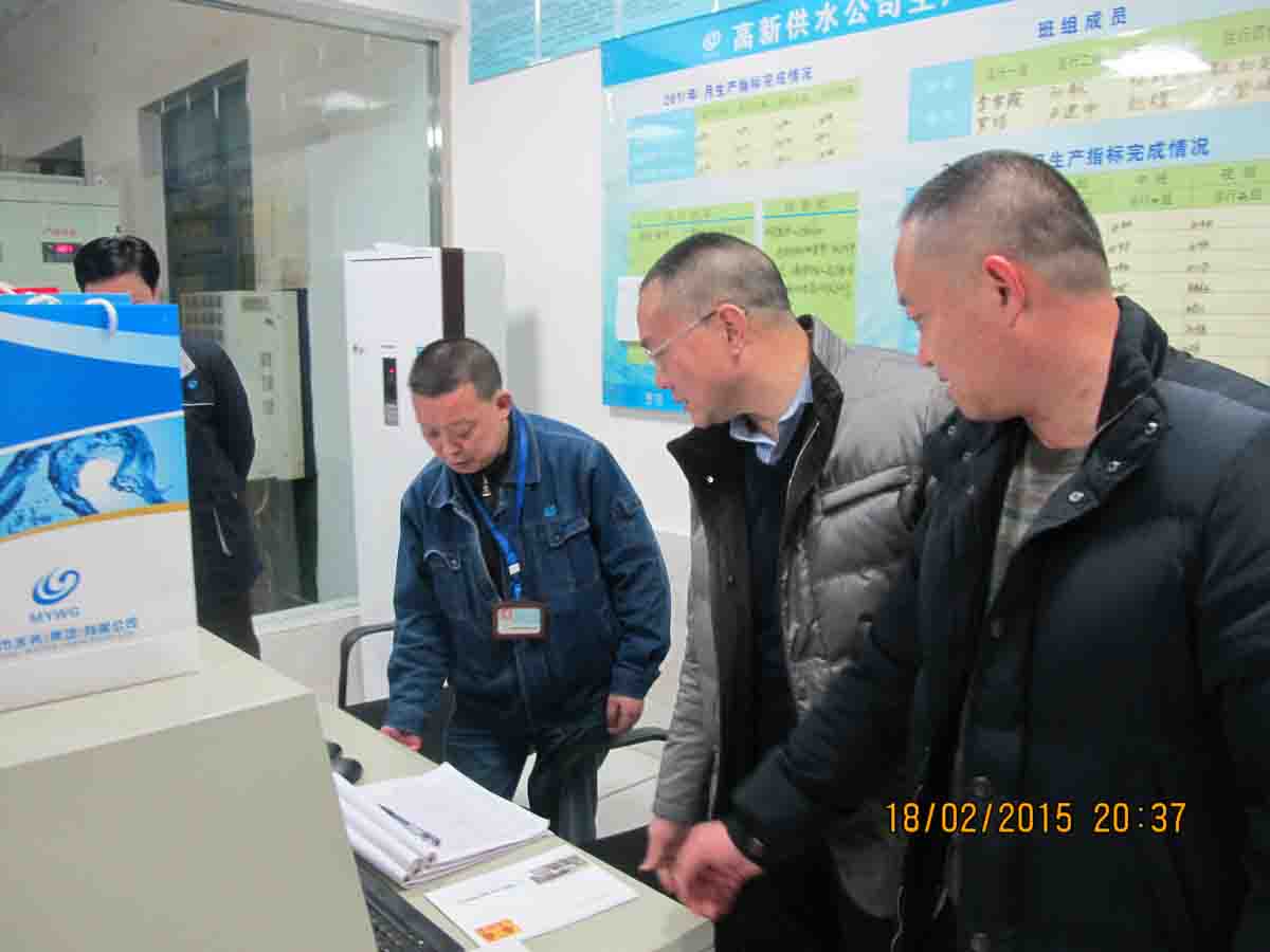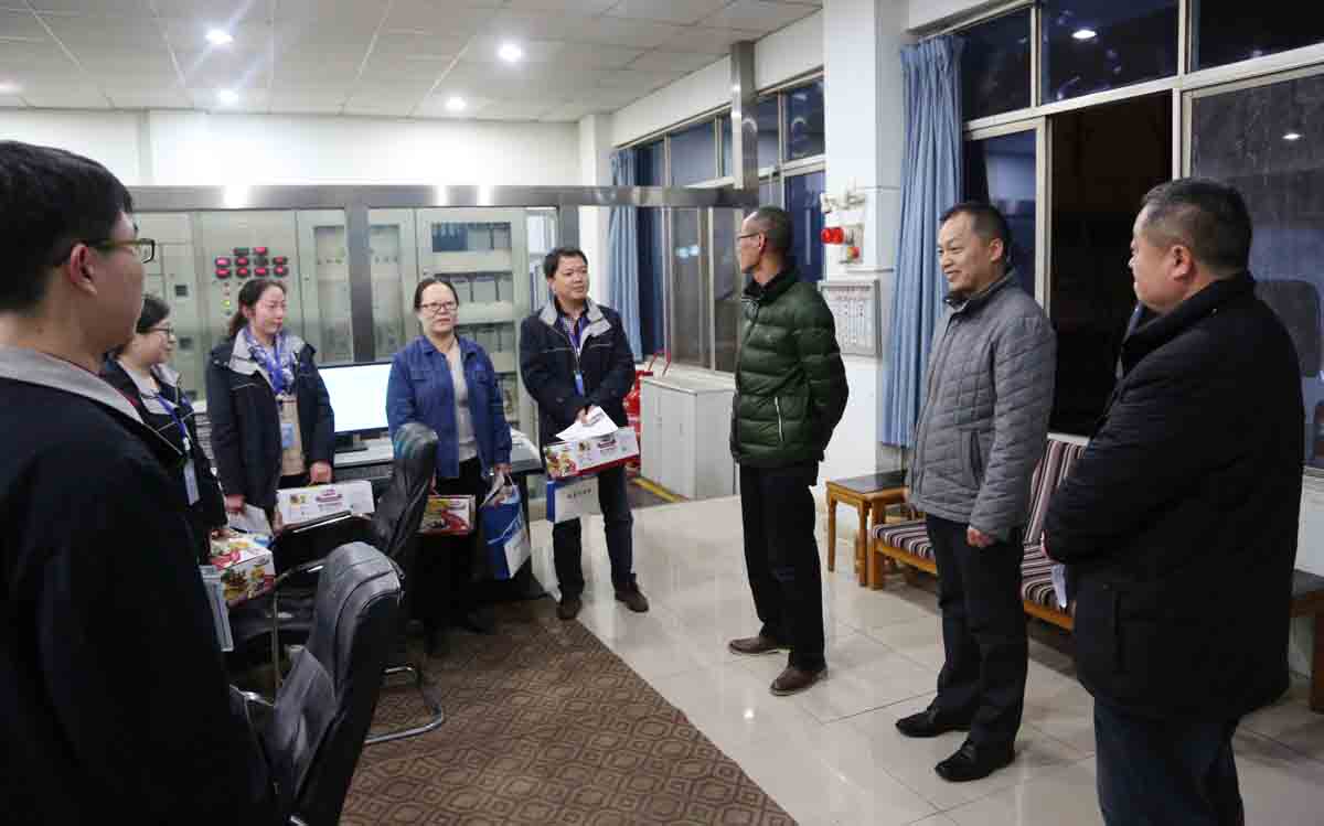 除夕之夜,是全家团圆的时刻,为了城市安全、正常供水,公司广大干部职工坚守在自己的工作岗位上。晚上8点,公司董事长、党委副书记、总经理欧飞跃,党委书记、副董事长杨先荣,党委副书记、纪委书记、监事会主席、工会主席张余川带领集团公司领导及有关部门负责人分成三组深入公司各生产、值班岗位慰问值班职工。