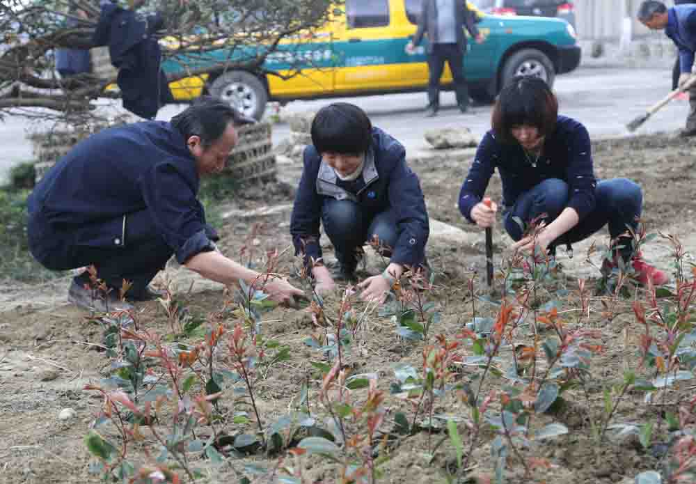 植树现场,绿影摇曳,热火朝天,植树队伍沐浴在三月的阳光里,劳作在和煦的春风中。大家分工明确,井然有序,你扶树苗、我培泥土,很快,一排排栽得整整齐齐的树苗跃然眼前,整个活动共栽种了1万余株树苗。共同合作的劳动场面展现了党员们团结协作、乐于奉献、积极向上的精神风貌。劳动现场栽下的每一棵树、每一株苗,不仅为土地披上了希望的绿色,同时也播下了文明、生态的种子。