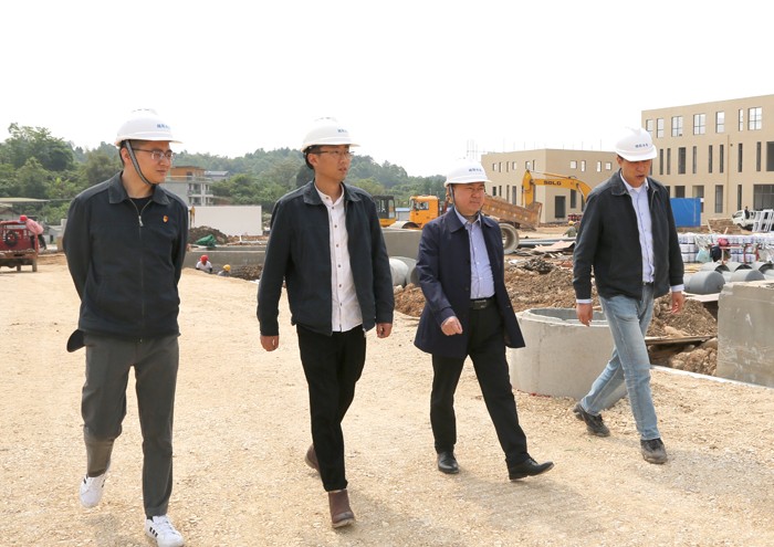 在开茂水厂施工现场,田青春实地查看了开茂水厂各构筑物的建设情况,详细了解该项目的基本概况和配套管网建设进度。