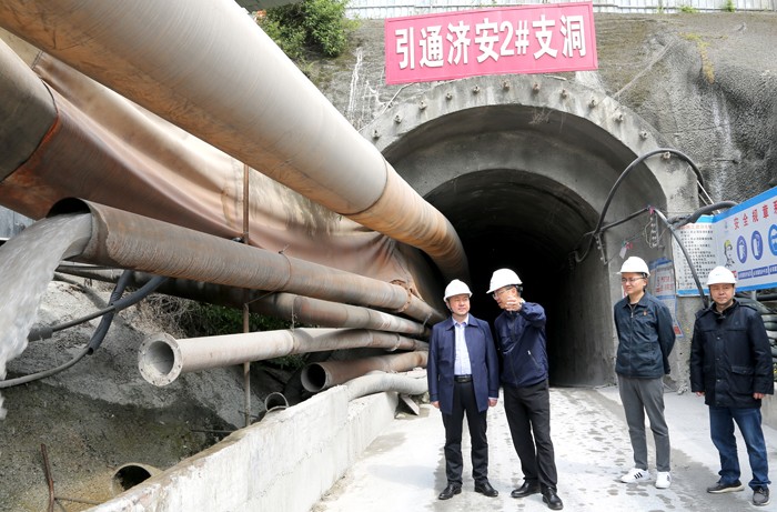 在现场,田青春一行深入“引通济安”项目的二号支洞、出口洞进行实地查看,详细了解项目推进情况和存在的问题。