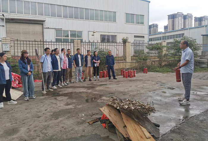 在灭火演练环节,部门负责人胥川向在场员工展示了灭火器的使用方法,通过详细的讲解和具体的操作让每个员工都能够正确地使用灭火器,在火灾发生时能够合理地进行扑灭、救援和逃生。