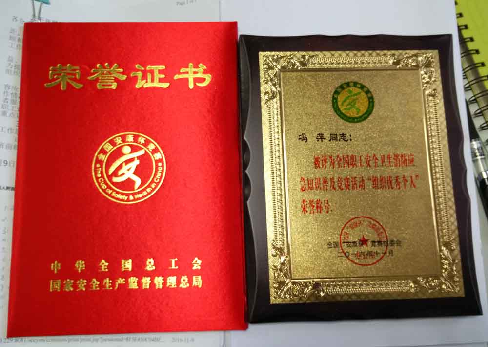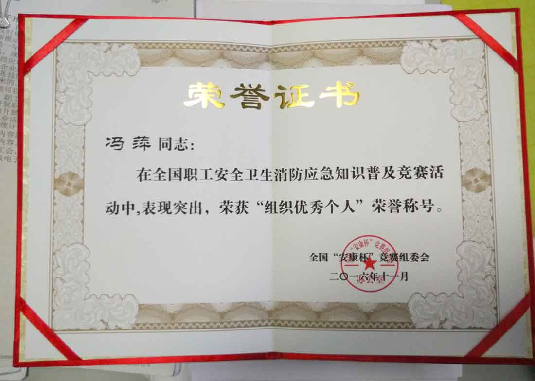 近日,全国安康杯竞赛组委会传递来喜讯:公司职工冯萍获得“全国职工安全卫生消防应急知识普及竞赛活动组织优秀个人”荣誉。