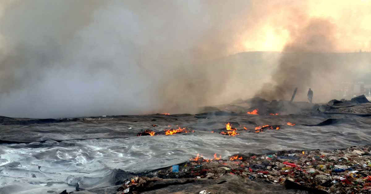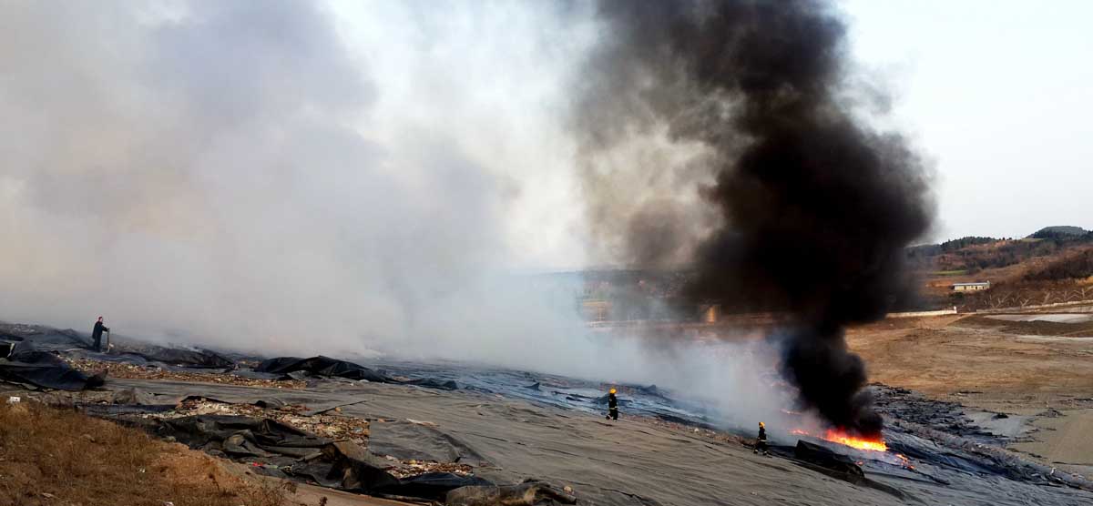 垃圾堆体内有很多易燃物体,由于垃圾堆体面积大,起火点越来越多,垃圾填埋场经理助理李林松带领场区所有的工作人员全部参与到灭火之中。