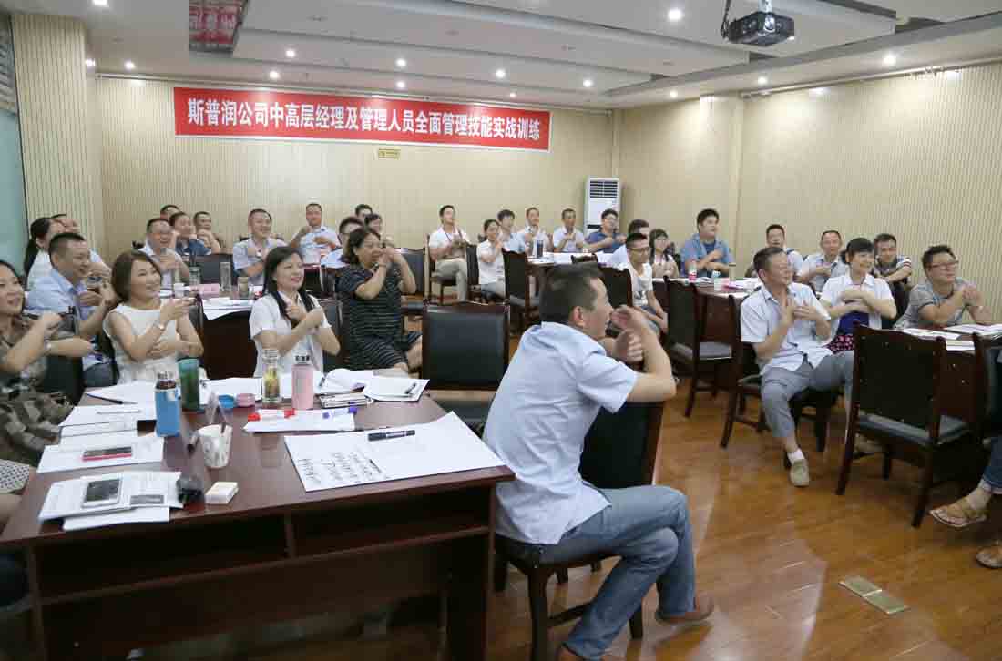 7月14日,斯普润公司邀请到百朗教育周旋老师,在涪滨印象办公区对该公司经营班子成员以及各级管理人员、业务骨干共计54人进行了管理技能实战训练的内部培训。
