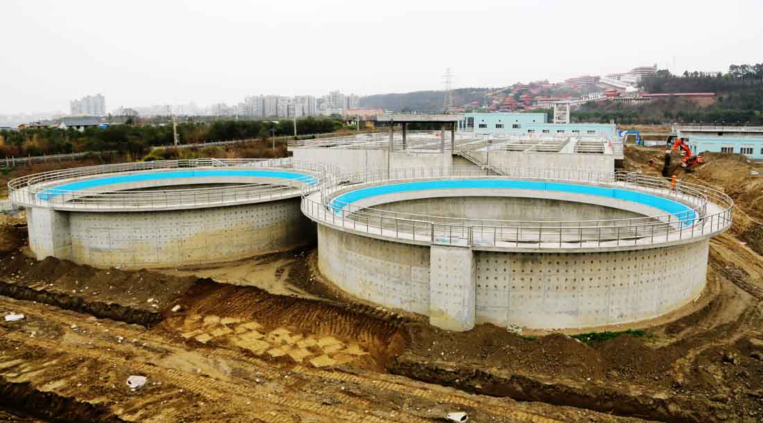 绵阳市七星坝城市生活污水处理厂工程:为进一步完善绵阳市污水处理设施布局,使区域内的生活污水和生产废水集中处理,达标排放,改善水环境,我市规划建设七星坝城市生活污水处理厂。项目主要建设内容为:新建总规模为日处理5万立方米污水处理厂,分两期建设,一期处理规模为2.5万立方米/日,处理工艺采用改良A2/O,污泥处理工艺采用机械浓缩脱水,出水水质执行《城镇污水处理厂污染物排放标准》一级A标准。项目建成后将服务于涪江沿岸的龙门镇、青义镇、石马镇、石马工业集中区和职教园片区,服务面积15.55平方公里,服务人口15.5万人。目前,项目土建工程已基本完成,项目计划于2017年内建成,并投入通水试运行。