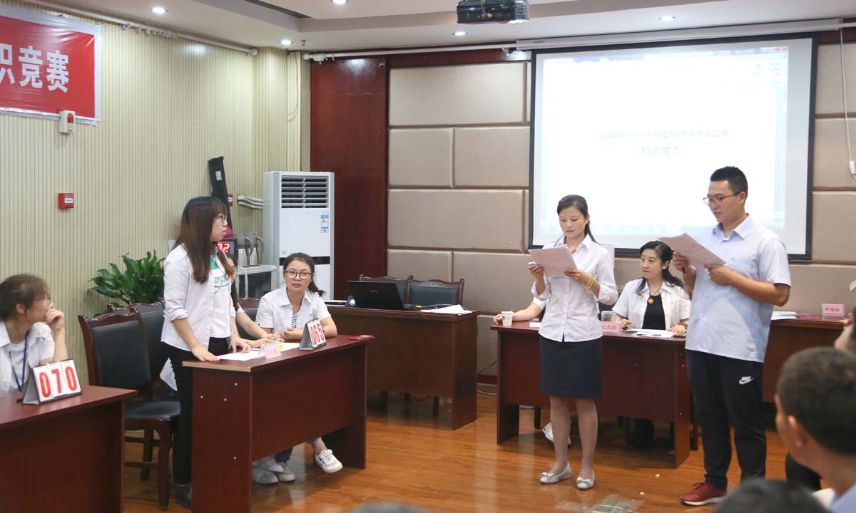 本次活动分为业务知识分享和企业文化知识竞赛两部分组成,在该公司分工会主席谢涛的组织下,两个环节的活动有条不紊的进行。在业务知识分享环节,有10名来自不同岗位的公司关键岗位人员及业务骨干以交流、PPT、演讲等形式,分享了自身岗位领域中的要点以及工作中的通用知识和疑难点;在企业文化知识竞赛环节, 4个工会小组分别派出一队代表在竞技场上参与角逐,竞赛知识面全方位的涵盖了企业文化和业务技能各个方面,从社会主义理念、核心价值观,到集团公司经营理念、责任使命等,再到斯普润市政工程公司发展历史、总体情况、工程建设、水处理事业、出租汽车业务板块等一系列内容,以必答和抢答的形式由场上场下职工参与回答。活动过程中,场上参赛人员激烈角逐,场下观众热情互动,整个活动持续在热闹的氛围中进行。