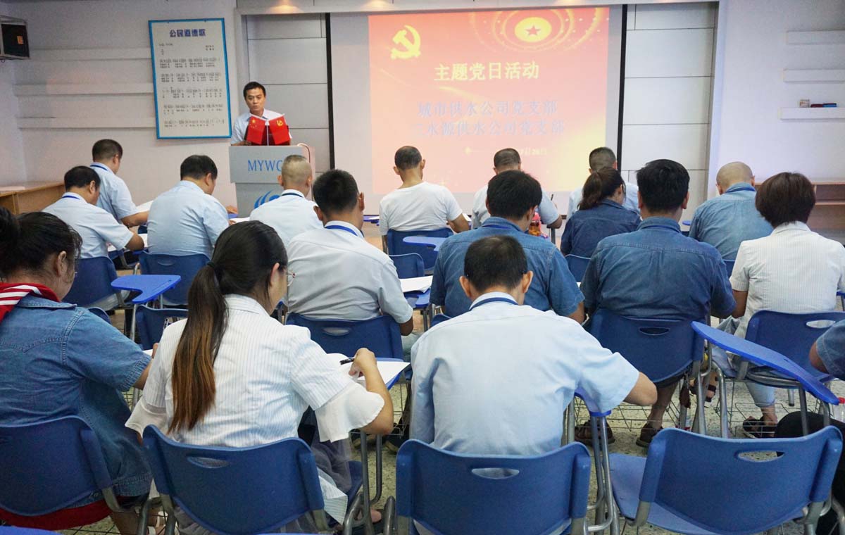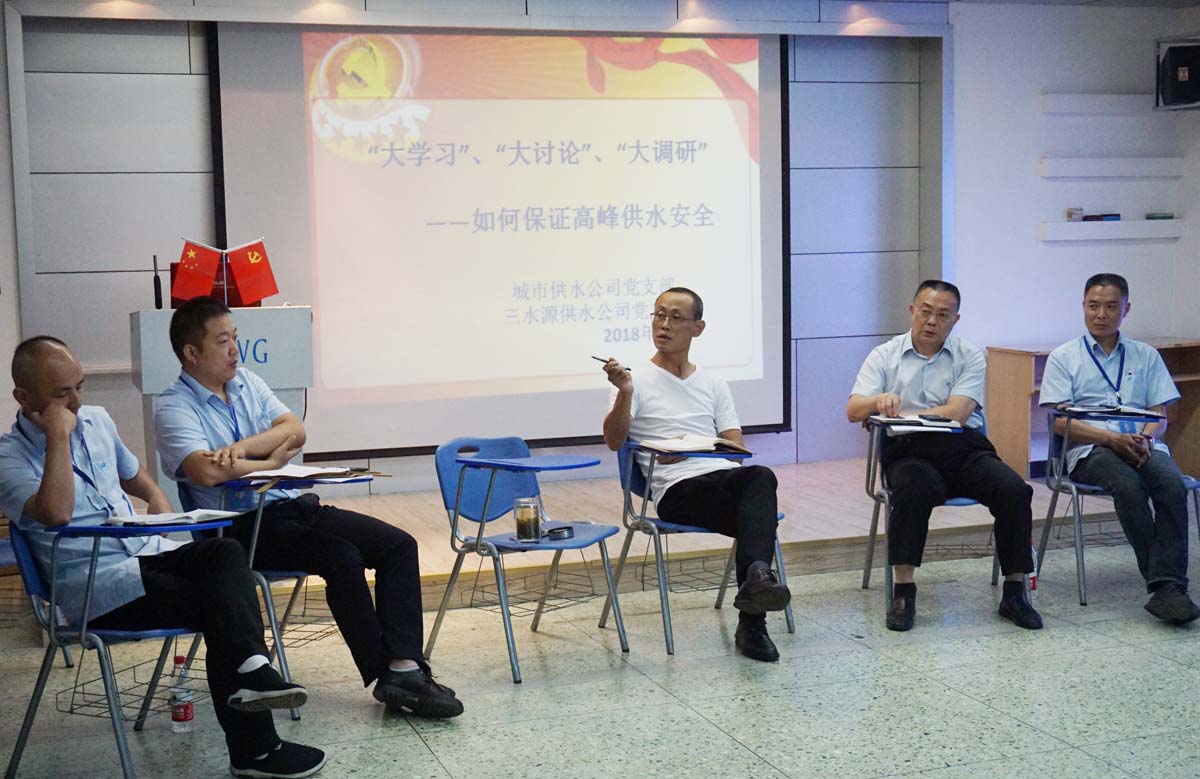 为进一步做好汛期安全供水工作,顺利度过夏季高峰供水期,7月26日下午,三水源供水公司和城市供水公司党支部在三水源供水公司联合开展了“大学习、大讨论、大调研——如何保证高峰供水安全”主题党日活动。集团公司党委副书记、总经理杨先荣和党委委员、副总经理郑旻以普通党员身份参加活动。