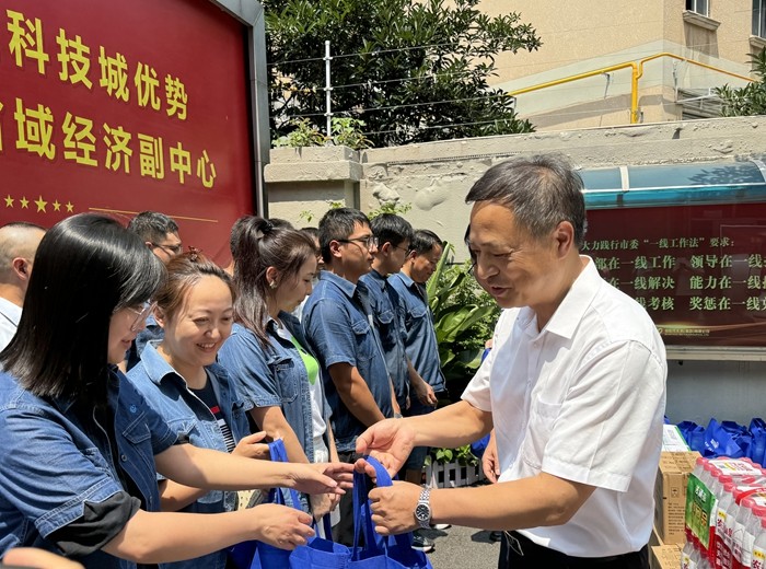 在现场,陈仕明一行详细了解了水务集团生产经营情况和防暑降温举措等工作情况,并为一线职工送上了夏季防暑慰问品,同时,对大家不畏酷暑、坚守岗位的敬业精神致以崇高敬意和衷心感谢。他提出,水务集团要严格执行防暑降温及安全生产规范,合理安排户外作业时间,不断改善作业环境,确保职工生产安全和身心健康,助力迎峰度夏,有效保障民生要素工作平稳推进。