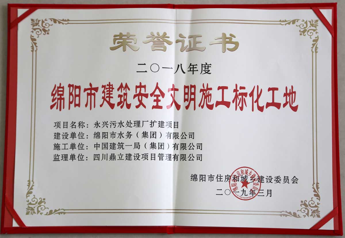据悉,该项目斩获的“绵阳市安全文明施工标化工地”称号是水务集团首次获得此殊荣,是对集团公司多年来不断改进完善工程项目管理工作的认可及肯定,成绩来之不易,荣誉弥足珍贵。