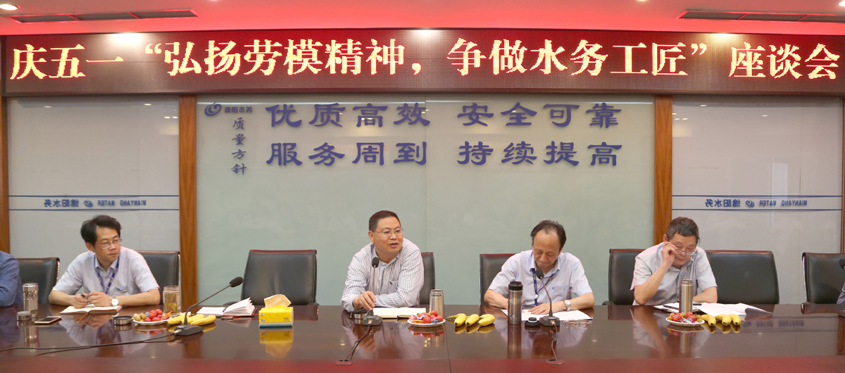 为庆祝“五一”国际劳动节,大力弘扬劳模精神、工匠精神,营造学赶先进的良好氛围,激发广大职工爱岗敬业,提升主人翁意识,团结动员广大职工为公司建设发展奉献智慧和力量。4月29日下午,集团公司在五楼会议室组织召开“弘扬劳模精神,争做水务工匠”先进典型座谈会。集团公司在家领导班子成员,公司市级及以上劳模,文明部门、先进部门负责人,优秀员工、服务明星、业务骨干、青年职工代表等50余人参加会议。集团公司党委副书记、纪委书记、监事会主席、工会主席张余川主持会议。