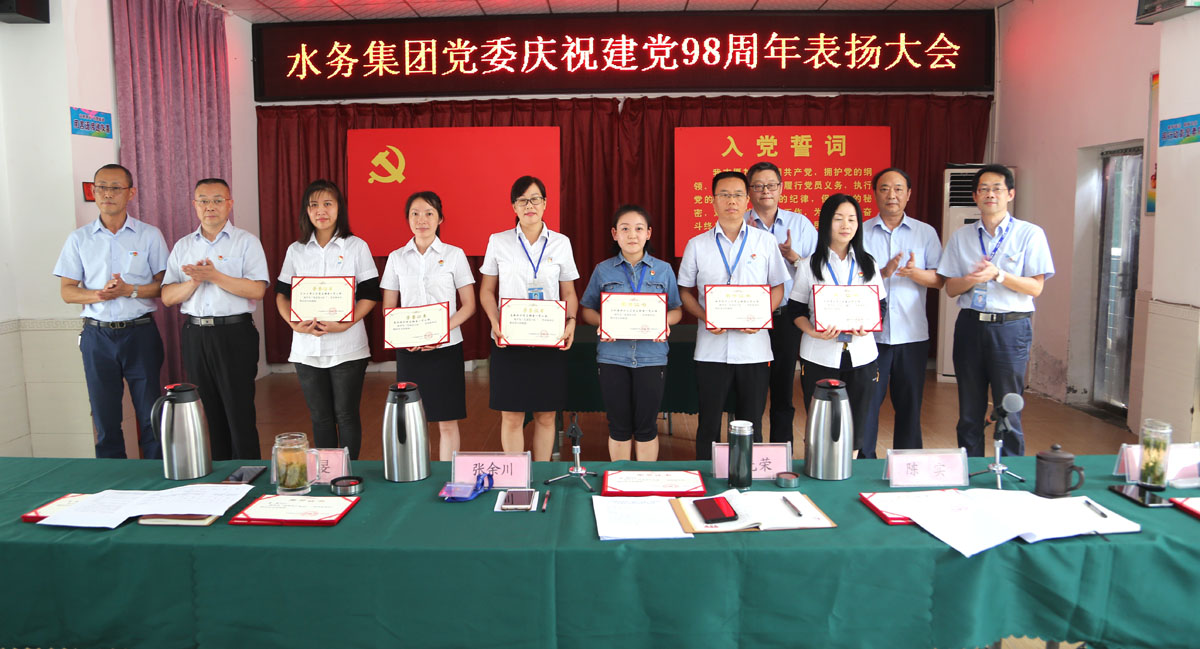 集团公司党委委员、副总经理陈实宣读集团公司党委表扬通报。首先通报的是获市国资委党委表扬情况,三江汇泽公司党支部获得“先进基层党组织”荣誉称号,城市供水公司薛向阳被评为“优秀共产党员”,党群工作部副经理贾玺被评为“优秀党务工作者”。为激励斗志、鼓舞干劲,公司党委对在过去一年涌现出的高新供水公司党支部等2个“先进党支部”,机关第二党支部第二党小组等6个“先进党小组”,韩晓红等36名“优秀共产党员”,唐胆等5名“优秀党务工作者”进行表扬。与会领导向先进集体和个人代表进行了颁奖。