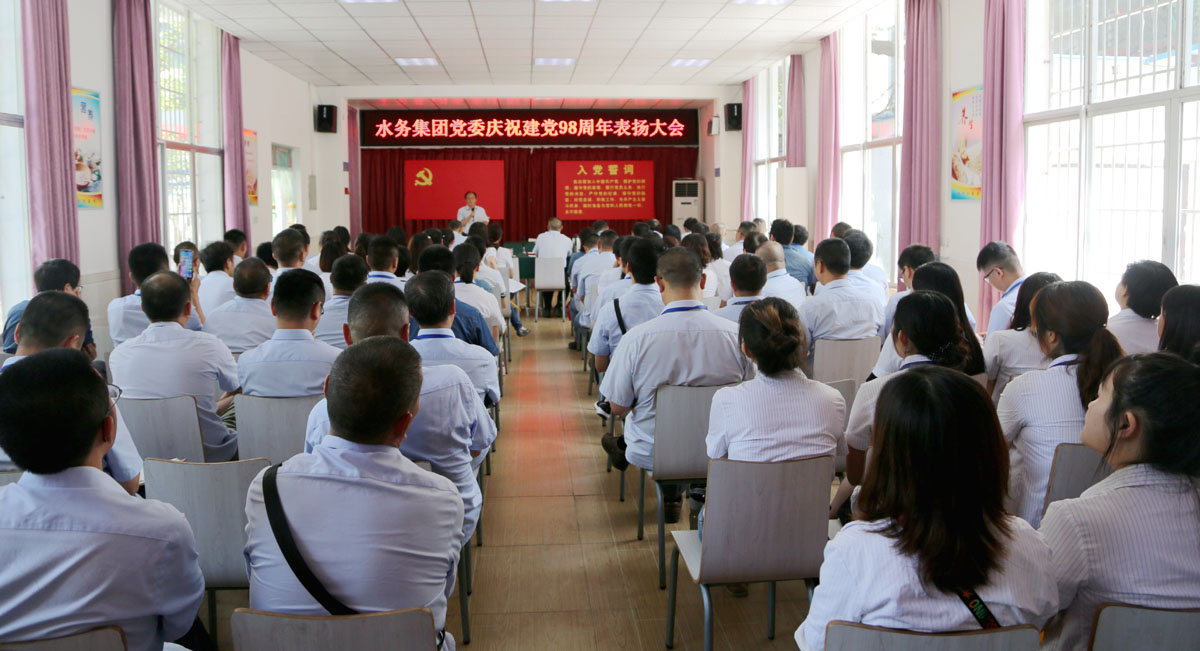 7月1日下午,集团公司党委在公司食堂举行庆祝建党98周年表扬暨主题党课活动。集团公司在家党委班子成员、党员领导干部,各党支部书记、委员,受表扬的各类先进代表、党员中层管理人员、新党员共计110人参加大会。大会由集团公司党委副书记、纪委书记张余川主持。
