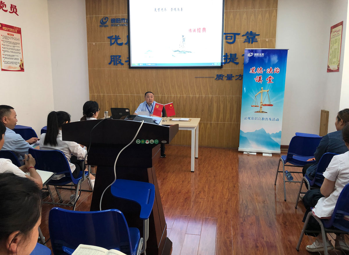 6月28日下午,按照集团公司《2019年度普法工作要点》的安排,客户服务中心牵头组织各营销部门在客服中心二楼学习室召开2019年第一期“道德·法治讲堂”活动。客户服务中心、城北供水服务所、高新供水公司、普润供水公司40余名职工代表参加活动。活动由城北供水服务所所长夏子涵主持。