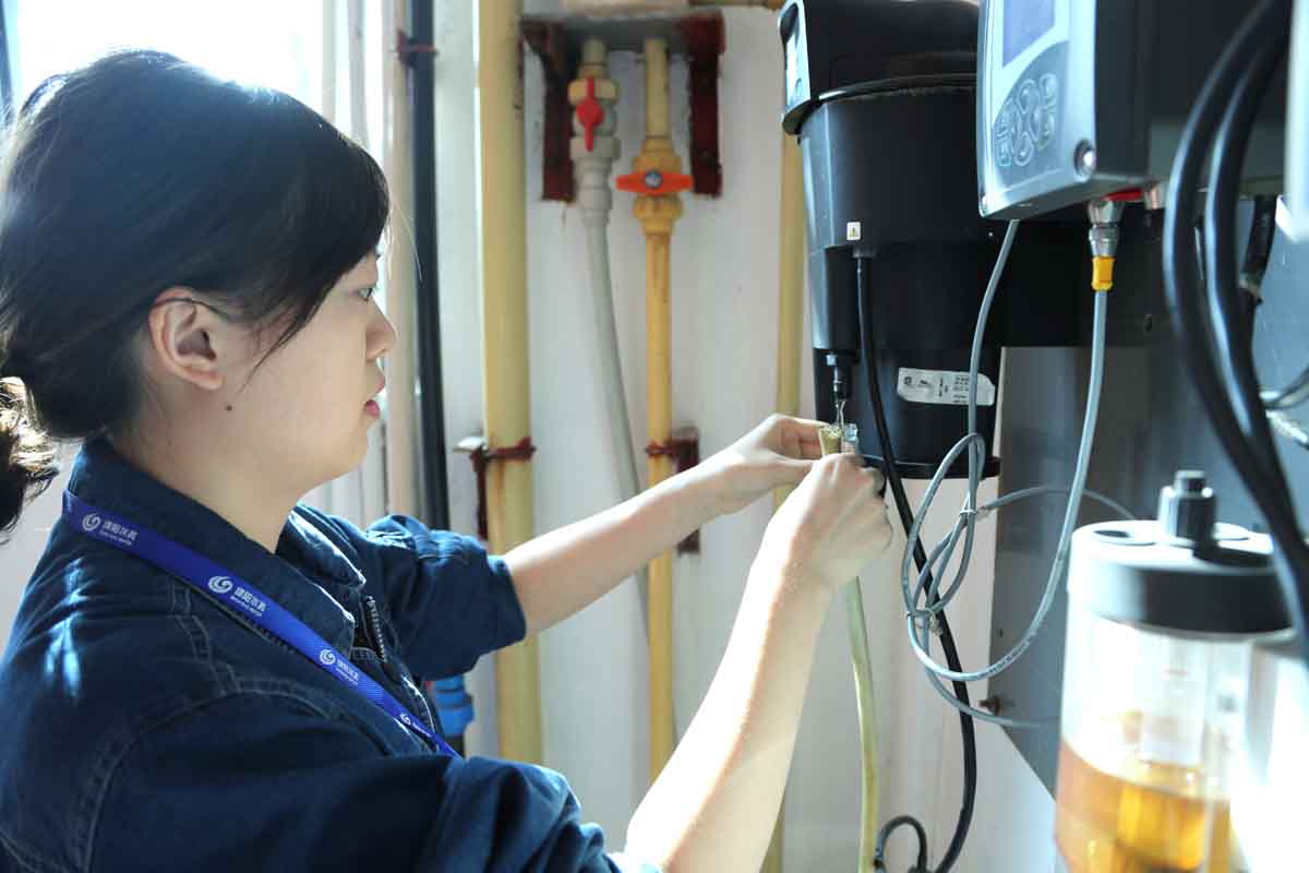 13:53,廖欢开始了今天的第二次现场巡查,这一次她还将打扫自己负责区域内的生产设备清洁卫生,下午的现场巡查持续到16:20才结束。据不完全统计,三水厂的生产设备共有数百台,值班的工人都要分区域负责清扫和维护。据了解,在制水工人的辛勤付出下,三水厂全天共为城市供应自来水11万吨。