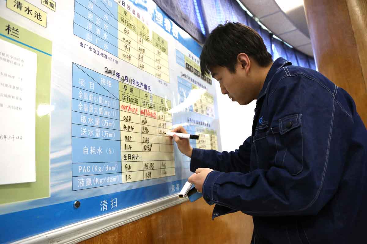 16:30,今天晚班的同事来交接班了。结束了一天的工作,廖欢准备下班后约上同事去看场电影,放松一下自己。像这样一天的工作,周而复始、日复一日年、复一年。正是这平凡的岗位上,平凡的点滴和永恒的坚持,保障了人们赖以生存、城市赖以发展的自来水供应。