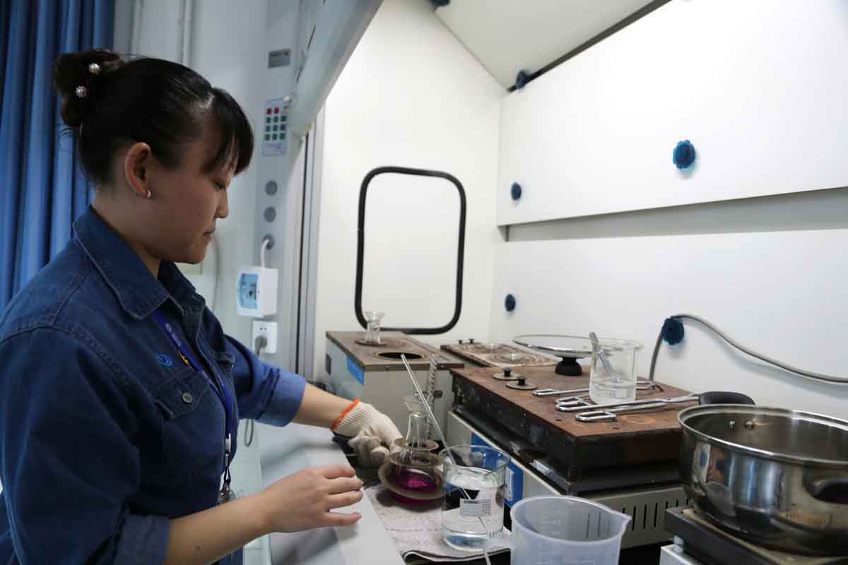 在三水厂的厂级水质化验室里,水质检测员熊竹正在认真地做着相关检测项目。她从早上的9点,也开始了一天的检测工作。厂级的化验室主要检测14项常规指标,每天都需要出具检测报告,并向公司水质检测中心提交。目前化验班组只有两名同志,因为需要长时间站着工作,熊竹经常感觉到腰酸背疼。隔着放置物品的搁物架看过去,熊竹正认真地登记检测数据,嘴角挂着浅浅地微笑。她自言自语的说:“我们的工作很重要,虽然辛苦,但很充实,我的每一天都很踏实和快乐!”