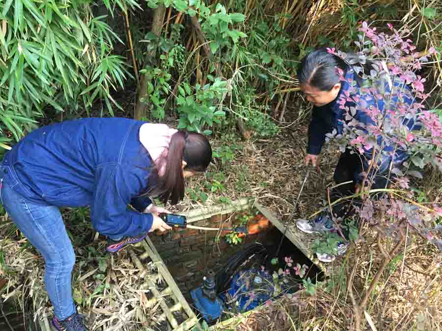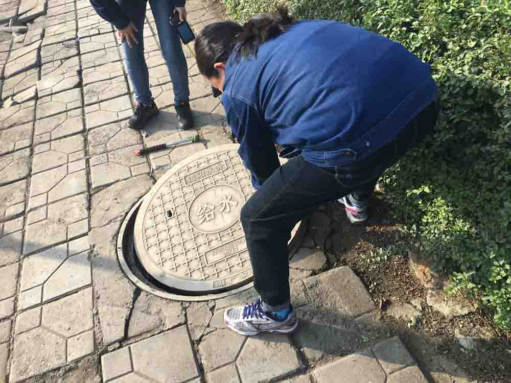 一把铁钩,一个背包,一辆电瓶车,这就是抄表员的标配。我们跟随着车辆来到了抄表的第一站——石桥铺片区,只见抄表队走进杂草丛生的树林里,扒开地面上的杂物,使劲掰开井盖,下井去查看。井盖可没有想象中那么好开,螺丝刀、铲子加九牛二虎之力才把井盖搬开,井盖下面的水表才会出现在视野中,通过抄表仪与水表的触碰,最终才能将数据输入抄表仪中,完成一只表的抄录。随后,来到新皂镇、高新实验中学、周边各个小区等进行抄表工作。其中,让我印象深刻的是垃圾房,车刚开到垃圾房远处就闻到一股恶臭味,随着距离接近臭味越来越大,我捂着口鼻看见抄表员走进了垃圾房,垃圾房里面更加臭气熏天,令人反胃。这是一只裸露的水表,周围布满了垃圾,抄表员按照抄表的流程仍然重复着抄录动作。据了解,与上述表务环境相同的远不只是一两只,同时,在抄表过程中还发现水表有跑、冒、漏、滴等现象,抄表人员均在抄表过程中及时发现、及时汇报处理。这样既降低了问题水表的出现,又减少了水费的损失。