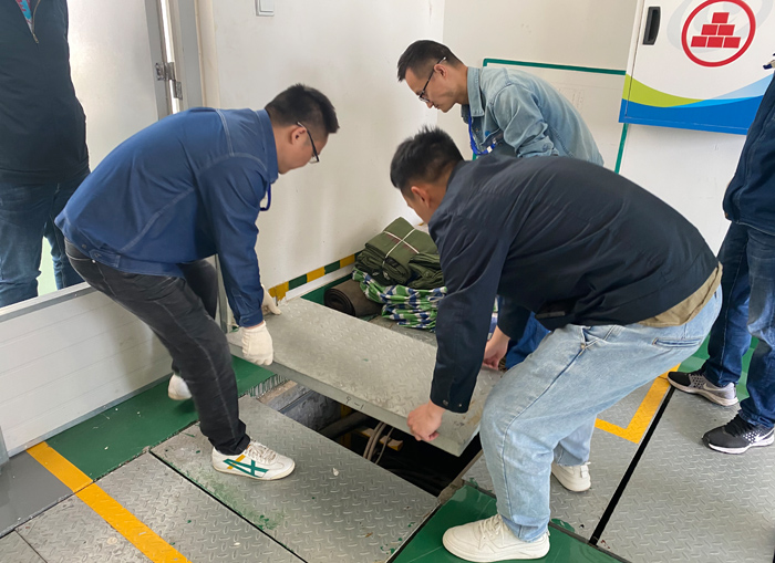 在现场,抢险队长程伟一声令下,演练正式开始。根据之前制定的演练方案,防汛队员们井然有序的开展汛期抢险工作。大家分工协作,快速完成了沙袋填装、重点部位封堵、生产设备启停、应急发电设备启停、启排水泵、分断高低压开关等各项防洪抢险工作。