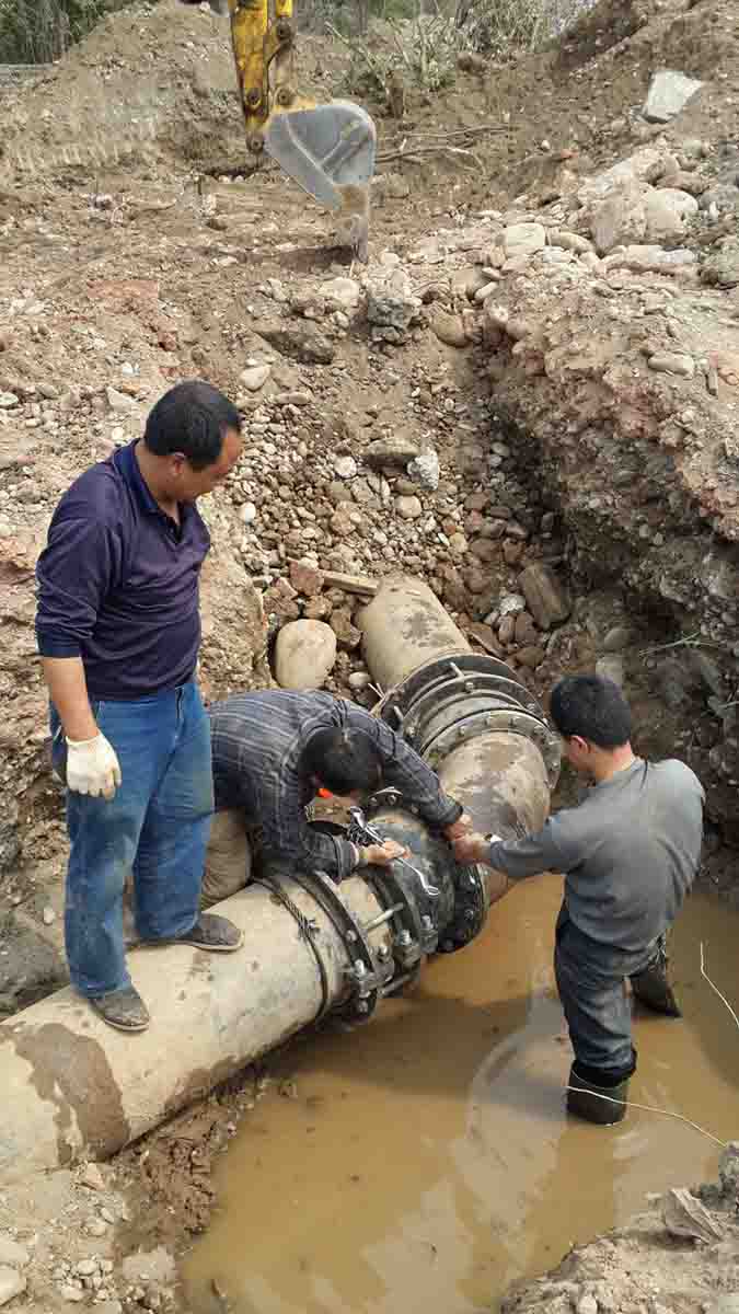 此事引起了公司领导的高度重视,提出了确保安全尽快抢通保障新区供水的要求。高新公司连夜备齐了抢修所必须的管道材料,集团公司设计所也及时赶到了现场,迅速制定了抢修方案。斯普润市政公司施工班组人员闻讯感到,不辞辛劳、加班加点、连续奋战。由于此段管道需加装3处砼支墩和两个弯头,施工存在一定难度,且砼支墩凝固也需要一定的时间。但在施工人员的努力下,克服困难,终于赶在4月2日21时完成了管道抢建任务,新区顺利恢复供水。