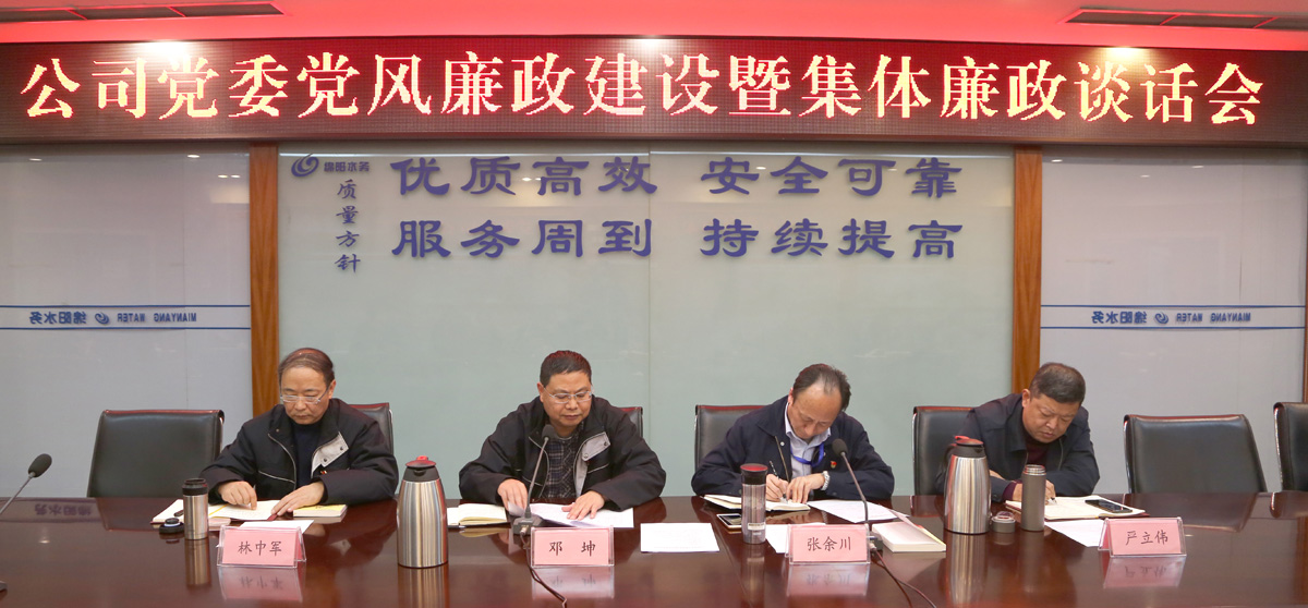 会上,党委书记、董事长邓坤同志代表党委进行党风廉政建设集体约谈,并提出工作要求。他要求全体管理人员一是要加强政治理论修养,始终保持思想纯洁、崇高追求和政治坚定;二是要保持头脑清醒,正确对待职位、权力和名利;三是要自觉接受监督,严格自我监督、主动接受监督、积极开展监督。他强调,各级管理人员要切实承担起“一岗双责”,管党治党要经得起检验,要加强对建设项目的过程、招标、工程管理等的监管,管好项目、管好自己。公司上下要认真做好岁末年初各项工作,确保年度工作任务圆满完成。